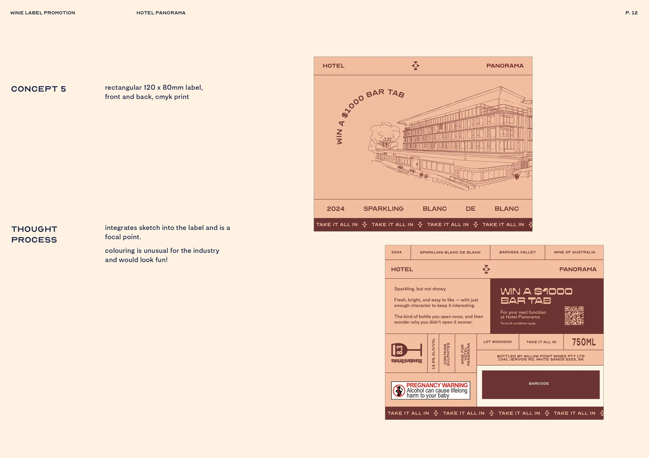 The chosen design balances a premium finish with subtle brand cues for Hotel Panorama, using bronze foil detailing to elevate the label while remaining cohesive within other premium sparkling wines.