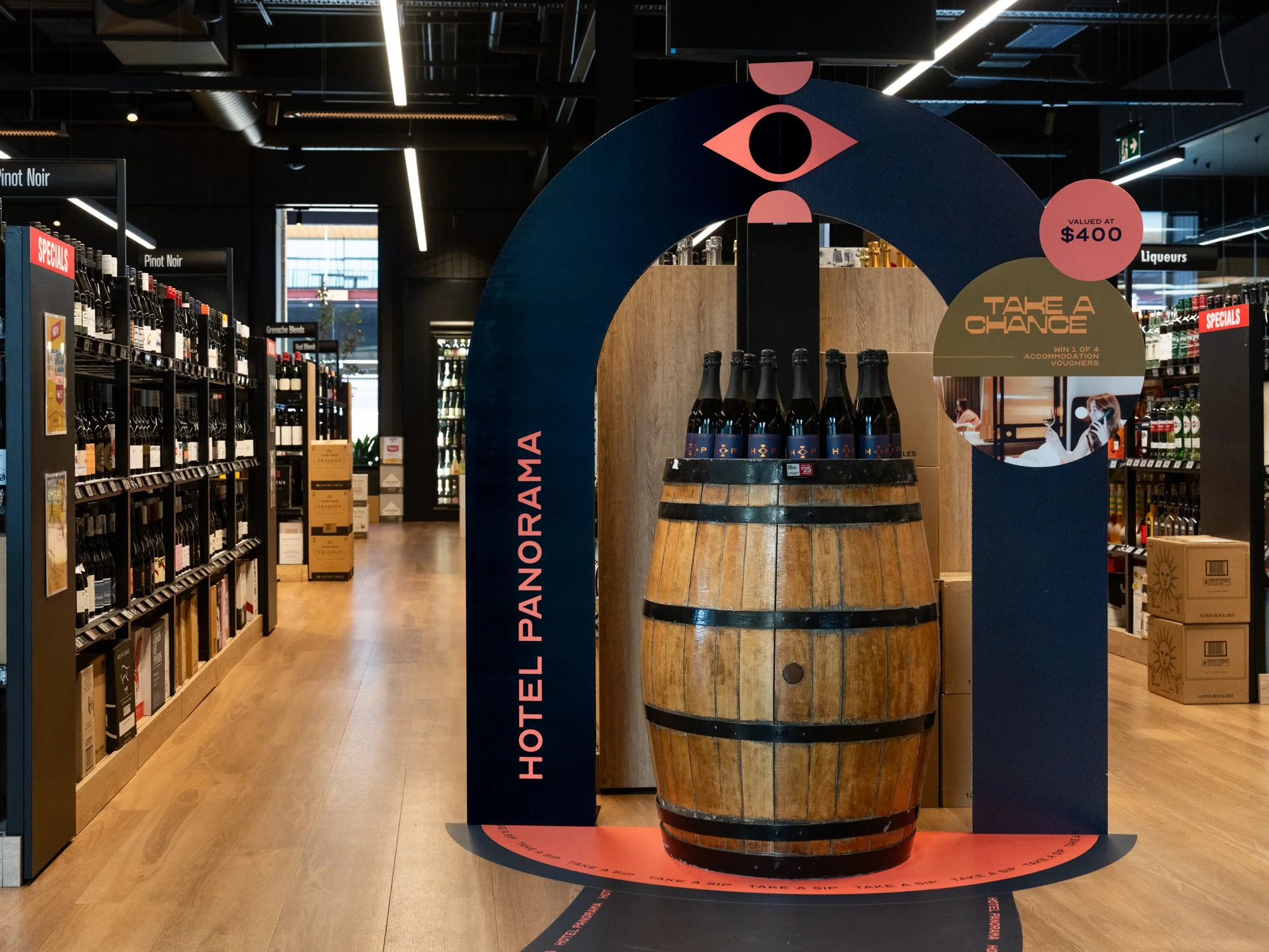 The project extended beyond packaging, requiring a physical installation that could bring the label to life within the venue and work seamlessly within real-world operational constraints.