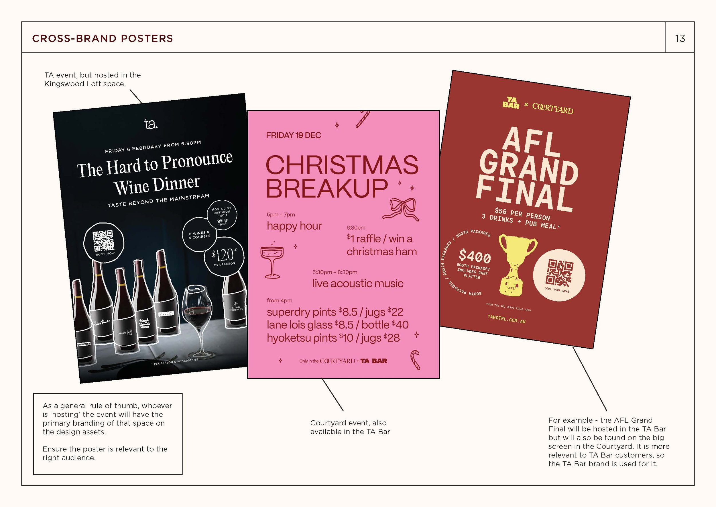 The challenge was to refresh the TA brand and create two sub-brands that positioned the venue as a premium dining and social destination.